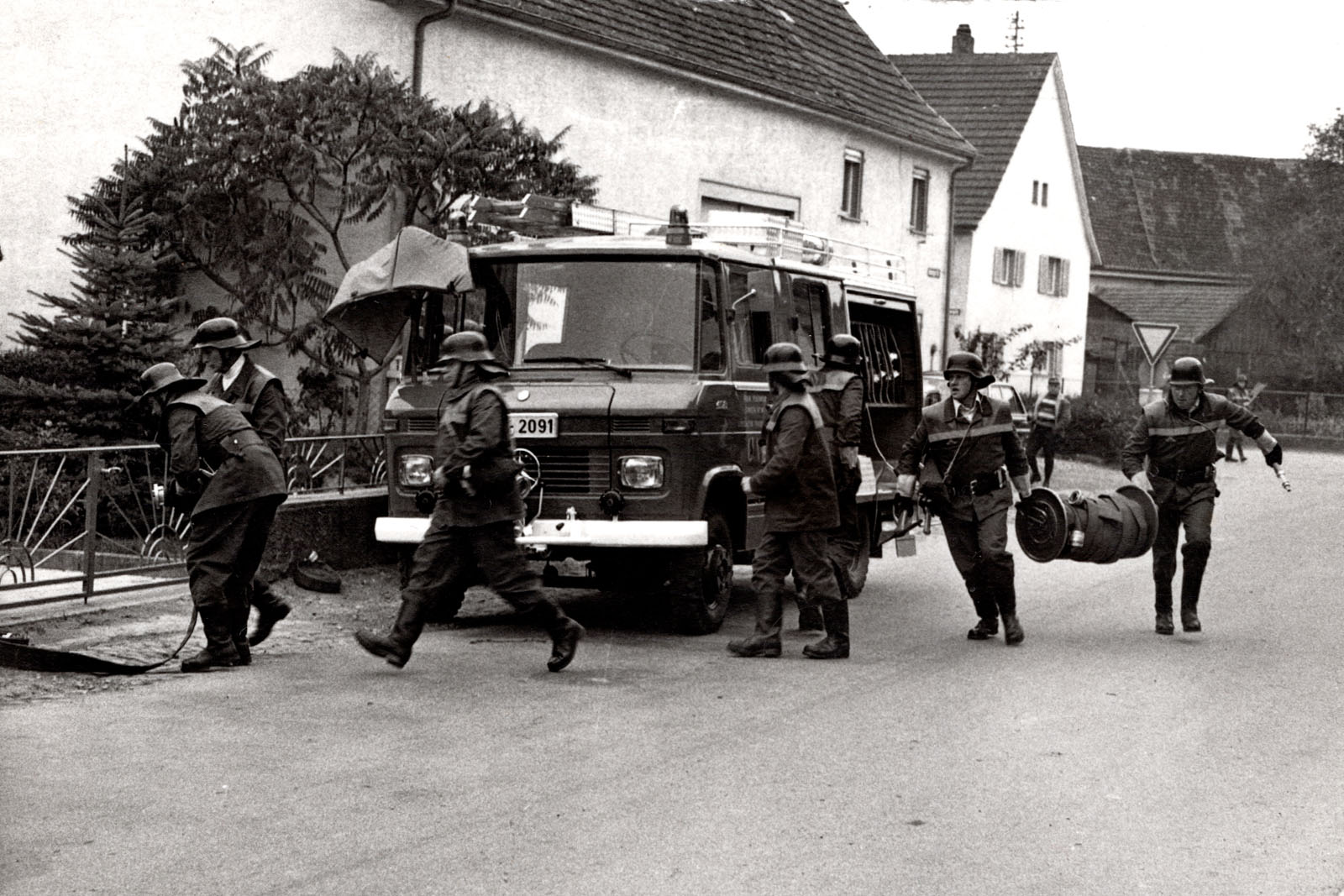 Die Wettkampfgruppe der Friedinger Feuerwehr im Jahre 1978 anlässlich des 100-jährigen Bestehens der Freiwilligen Feuerwehr in Volkertshausen: Leo Mayer, Albert Bechler, Manfred Neidhard, Lothar Riederer, Reinhold Neidhard, Wolfgang Kornmayer, Wolfgang Bechler, Wolfgang Gramlich, Peter Nägele | Video: Wolfgang Gramlich